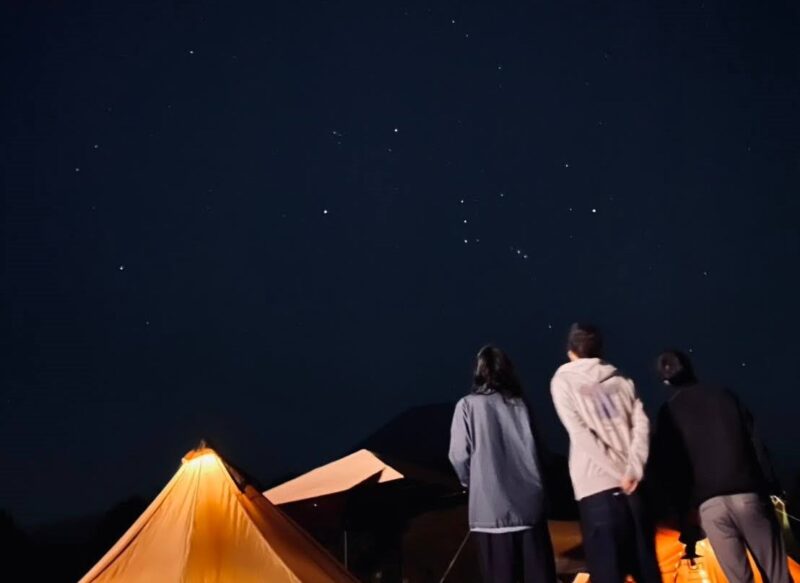 朝・夜の涼しい中で感じた焚き火の温かさ、都会に住んでいれば普段なかなか見られない満点の星空、雨であればテントにあたる雨音、虫の音色を思い出してください!!