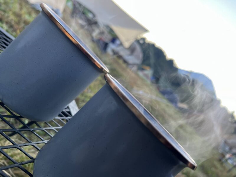 そして朝、前項で夜の焚き火が最高と書きましたが、早めに起きて日の出を見ながら満喫するのんびりモーニングが本当に良い時間です!